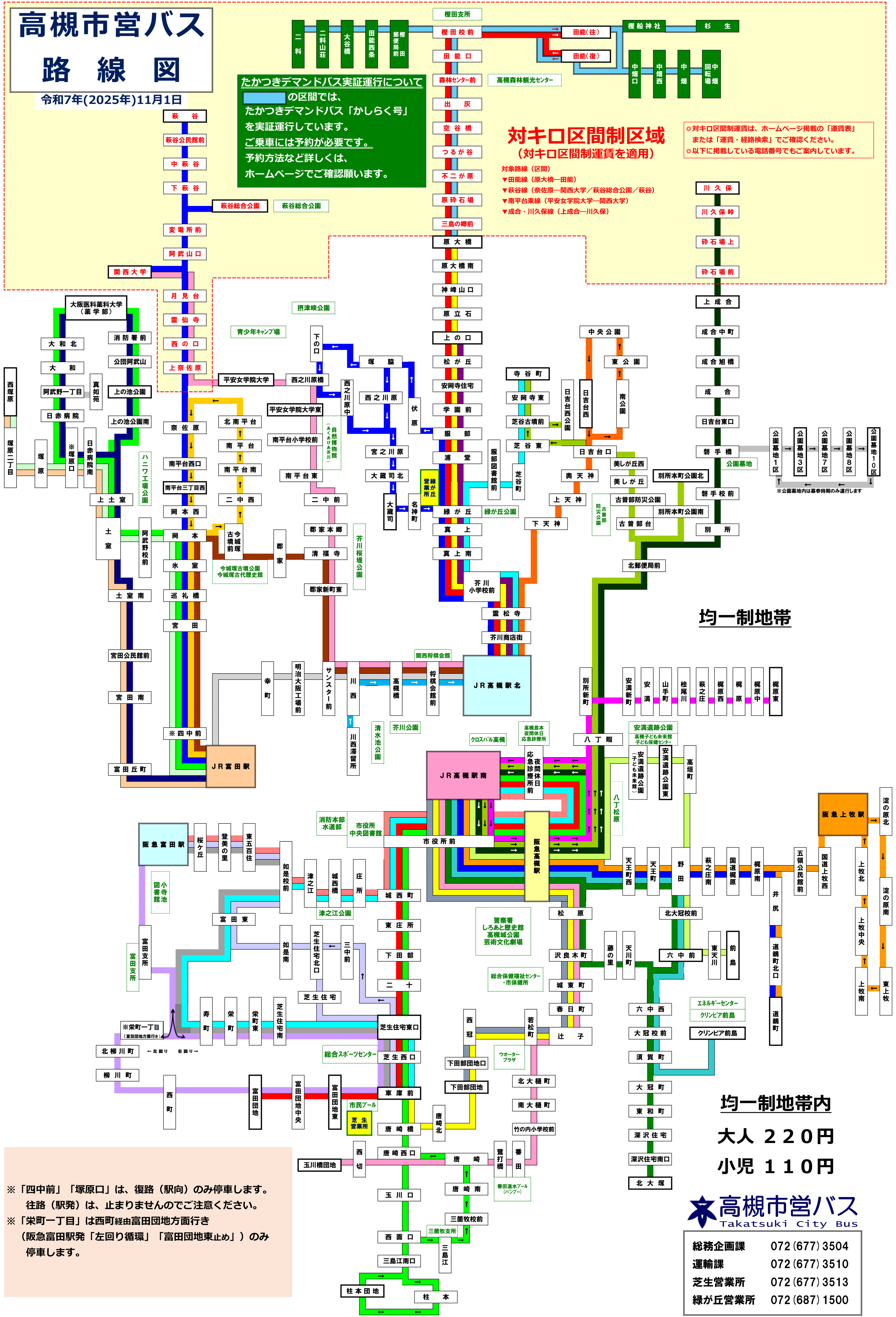 緑が丘営業所 TEL 072-687-1500 (北地域、主にJR線より北側の運行便) 〒569-1026 大阪府高槻市緑が丘三丁目4-1